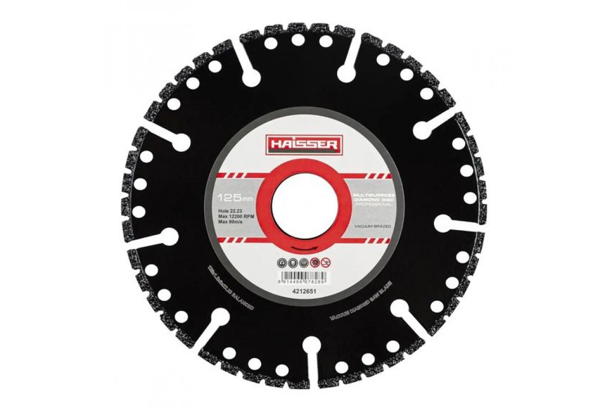 Диск алмазний Turbo concrete pro 230х3.0х10х22.23 Haisser Диск алмазний Turbo concrete pro 230х3.0х10х22.23 Haisser - має великий ресурс роботи,   призначений для різання бетону, армованого бетону, цегли, граніту, мармуру. В процесі роботи диска не потрібне додаткове охолодження завдяки унікальній формі алмазної кромки. Посилена основа диска ідеального збалансована і запобігає деформації. Міцний і надійний, відрізняється довгим терміном служби і простотою у використанні.