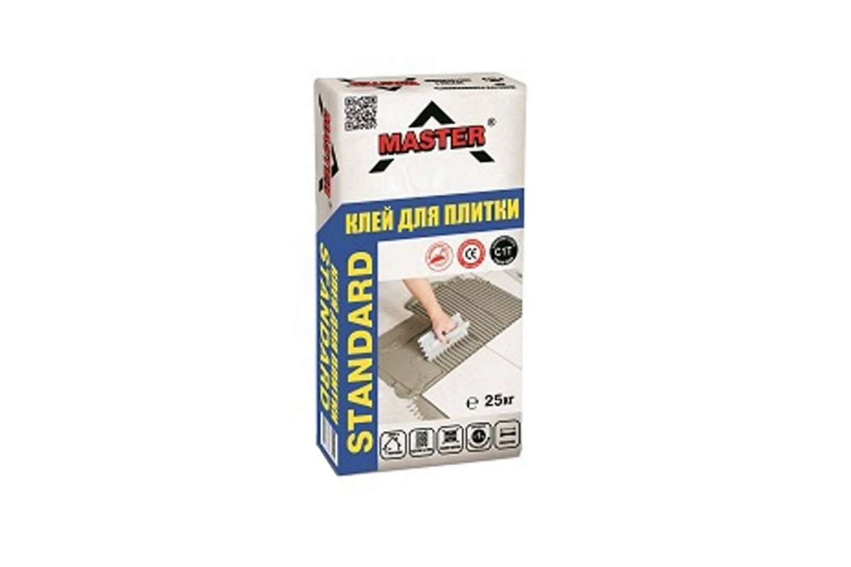 Клейова суміш «Мaster-Standard» використовується для облицювання стін і підлоги всередині і зовні будинків керамічною плиткою розміром не більше 500х500 мм. Суміш може застосовуватися по нешаткою і іншим міцним поверхонь.«Мaster-Standard» используется для облицовки стен и полов внутри и снаружи зданий керамической плиткой размером не более 500х500 мм. Смесь может применятся по недеформируемым и другим прочным поверхностям.