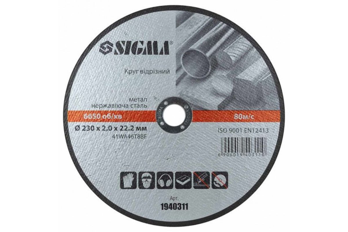 "> Круг відрізний по металу 230х2, 0мм SIGMA, зачисний, Диски по металу