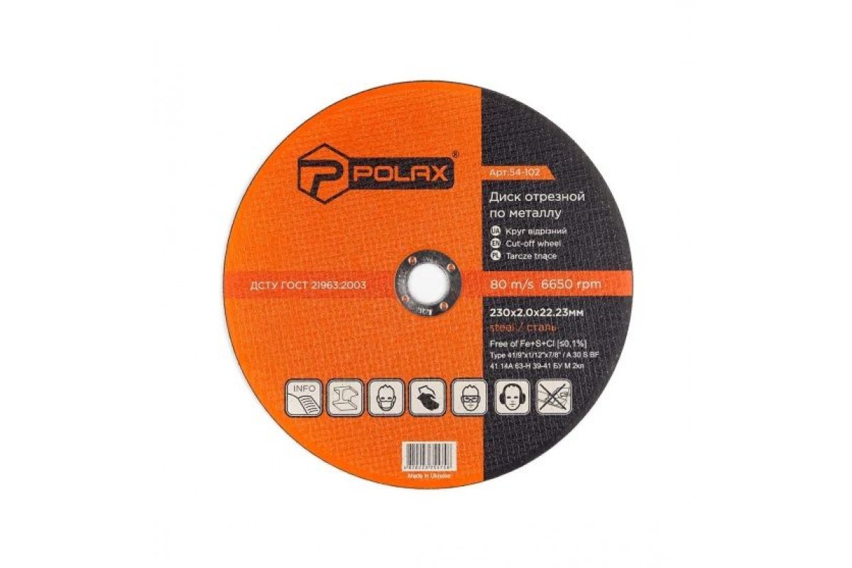 "> Круг відрізний по металу 230х2, 5мм POLAX, відрізний, Диски по металу