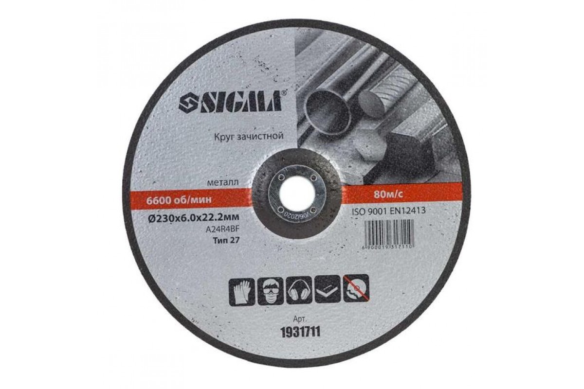 Круг зачисний по металу Ø230×6.0×22.2мм, 6600об/хв SIGMA (1931711) застосовується для шліфування зварних швів і з'єднань після зварювання, для зачистки поверхонь і кромок перед зварюванням, обдирання окалини та видалення іржі. Характеристики: Підходить для кутових шліфмашин всіх класів потужності Армування шарами спеціальної сітки, що забезпечує високу міцність і зносостійкість кола Висока абразивність при самому мінімальному притискному зусиллі Твердість R для застосування в умовах підвищених навантажень Стабільність форми при обробці