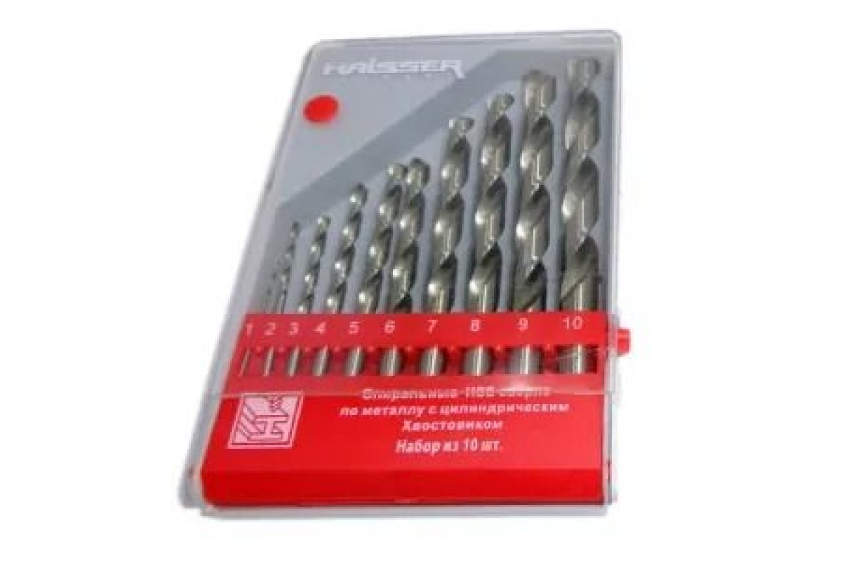Набір свердел по металу HAISSER (1-10) складається з 10 одиниць діаметром 1, 2, 3, 4, 5, 6, 7, 8, 9, 10 мм.