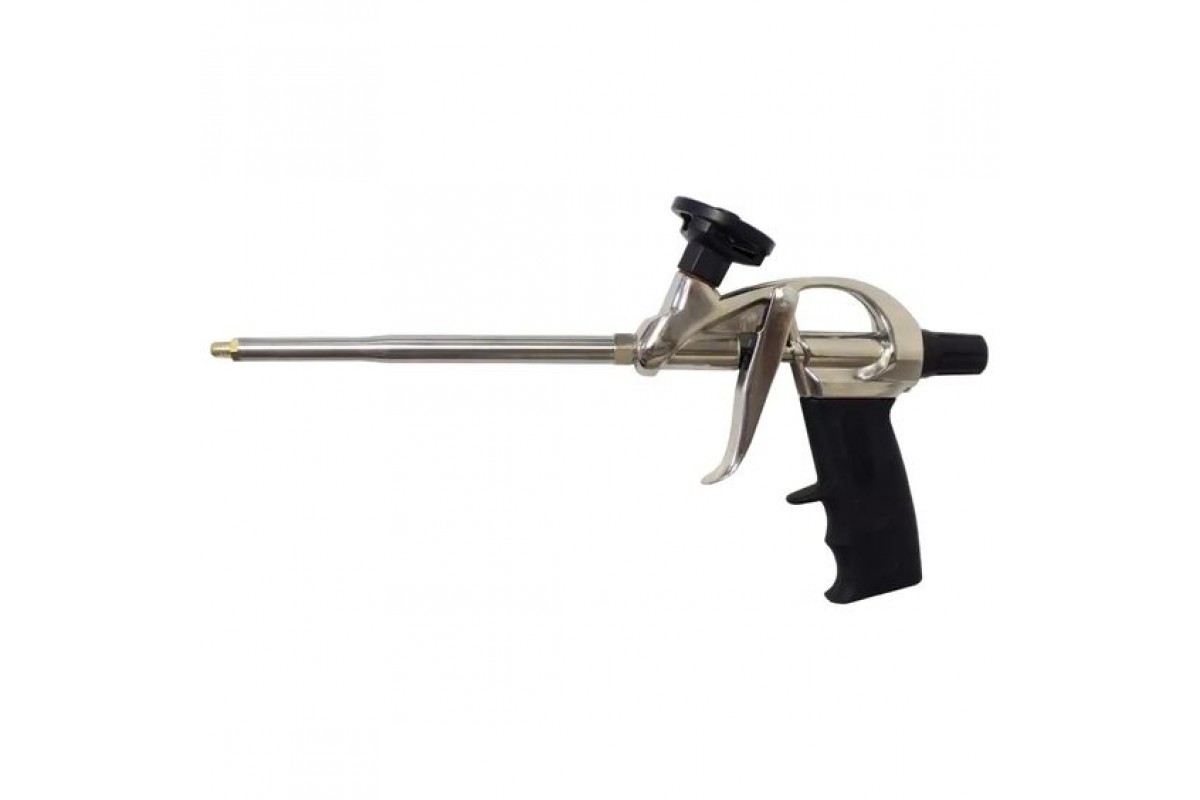 Професійний пістолет для зручного нанесення монтажної піни при установці дверей, вікон та інших елементів будівельних конструкцій. Виріб оснащений спеціальною пластиковою рукояткою з упорами для пальців, що забезпечує максимум комфорту в процесі роботи навіть в зимовий період. На корпусі пістолета розміщений легко обертаються регулювальний гвинт, що сприяє легкості проведення робіт. Основні робочі елементи виконані з міцного металу і мають антикорозійне покриття. Виріб підходить для всіх видів балонів з професійною монтажною піною. У комплектації передбачені дві допоміжні пластикові насадки для тонкої і точної роботи.