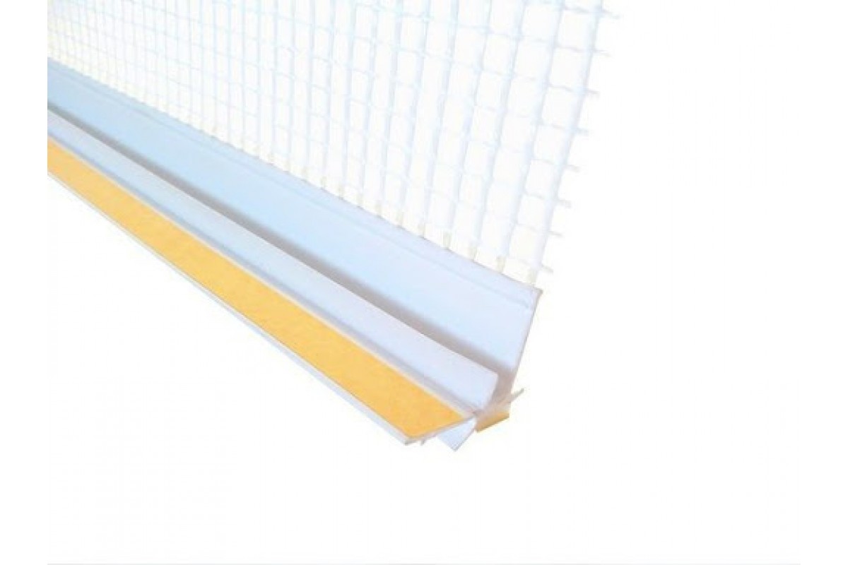 Профиль оконный примыкающий применяется для качественного примыкания штукатурки в оконных и дверных рам; предотвращает возникновение трещин между оконной (дверной) рамой и штукатуркой за счет упругой уплотняющей прокладки (компенсирует тепловое расширение), исключает возникновение влажности (развитие грибков, плесени и т. п.). Высококачественная щелочестойкая стеклосетка выполняет функцию армирования откоса, повышает его прочность, препятствует появлению трещин и позволяет создать ровный угол отделки откосов окна. Ширина полоски сетки составляет 10 см, что необходимо по технологии для соединения с последующим армирующим слоем штукатурки.