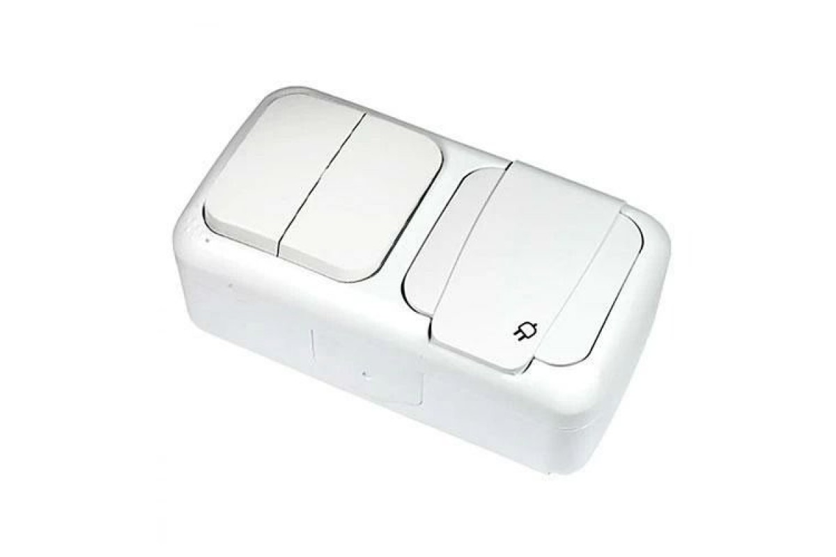 "> Вимикач 2кл. + Розетка з/з IP54 Palmiye (біла) VIKO, Palmiye, Зовнішні